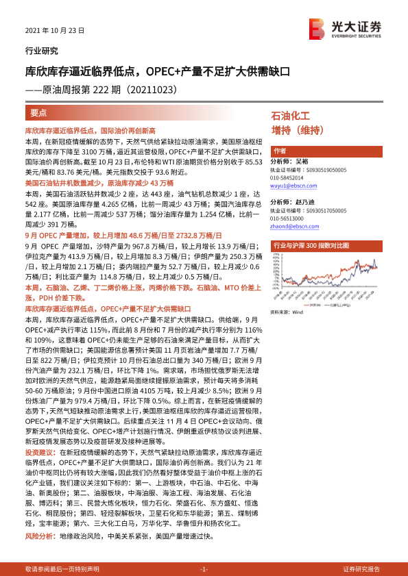 【光大证券】【20211023】库欣库存逼近临界低点,OPEC+产量不足扩大供需缺口——原油周报第222期(20211023)-11页