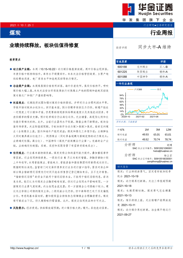 【华金证券】【20211025】20211025-华金证券-煤炭行业周报:业绩持续释放,板块估值待修复-16页