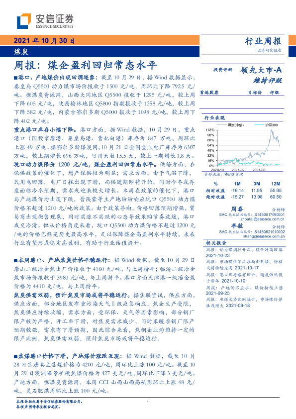 【安信证券】【20211030】煤企盈利回归常态水平-26页