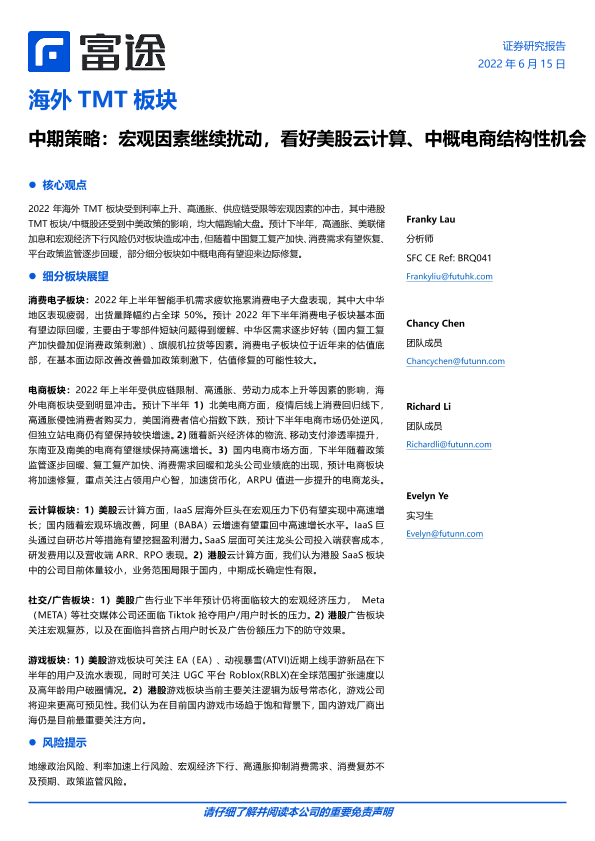【富途证券】【20220615】海外TMT行业板块中期策略-25页