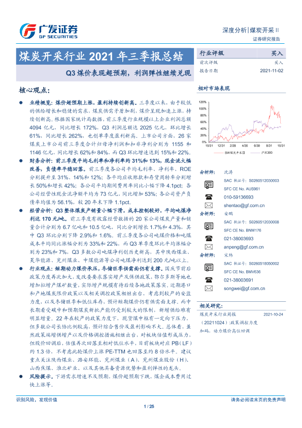 【广发证券】【20211102】煤炭开采行业2021年三季报总结:Q3煤价表现超预期,利润弹性继续兑现-25页