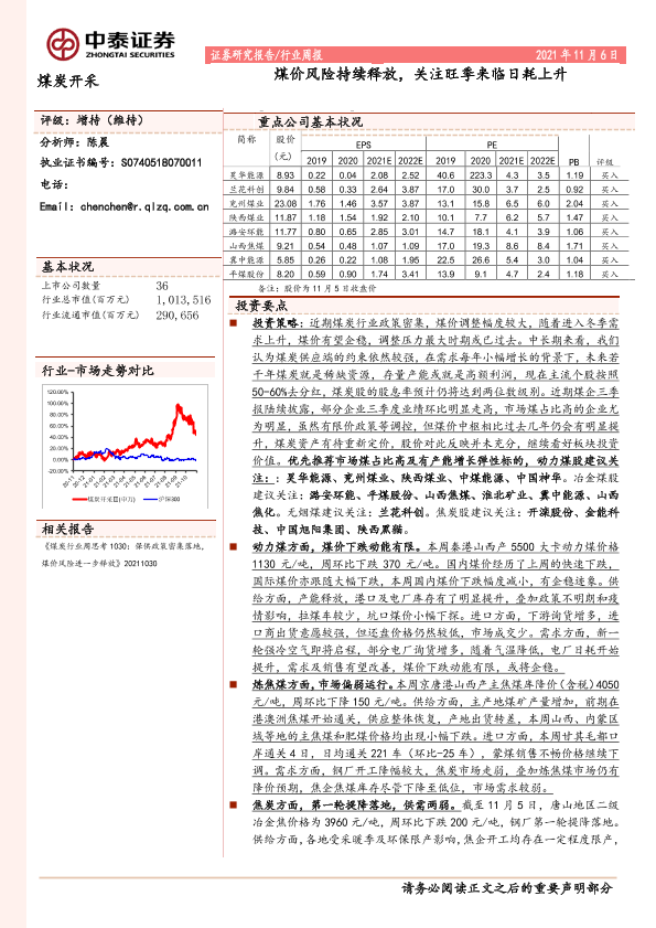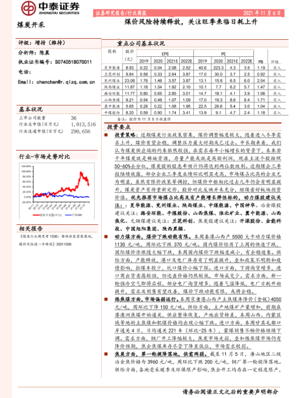 【中泰证券】【20211106】20211106-中泰证券-煤炭开采行业周报:煤价风险持续释放,关注旺季来临日耗上升-14页