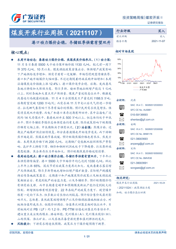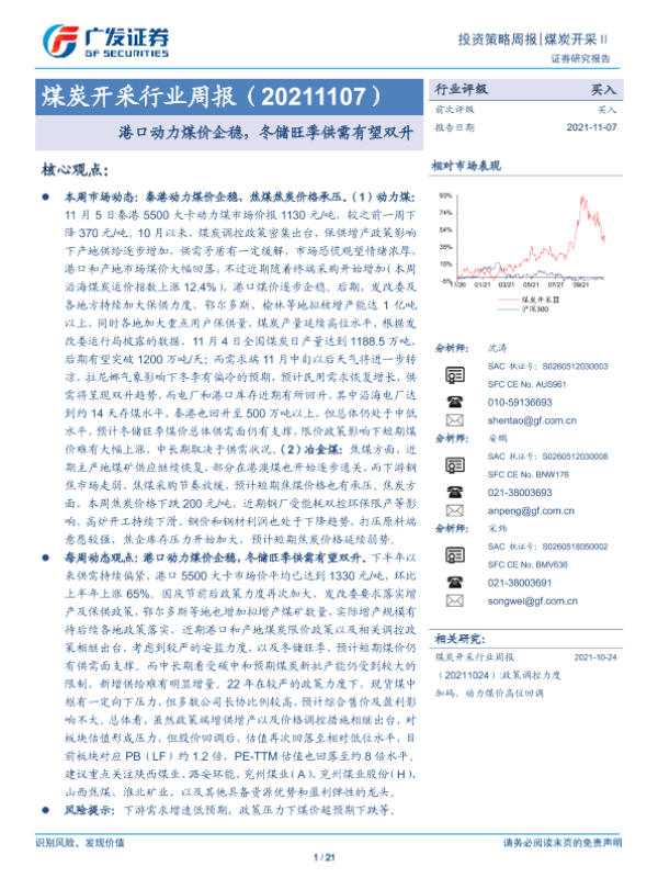【广发证券】【20211107】20211107-广发证券-煤炭开采行业周报:港口动力煤价企稳,冬储旺季供需有望双升-21页