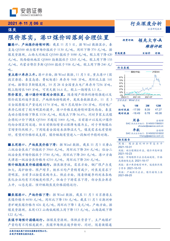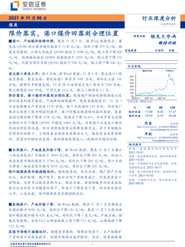 【安信证券】【20211106】20211106-安信证券-煤炭行业深度分析:限价落实,港口煤价回落到合理位置-23页