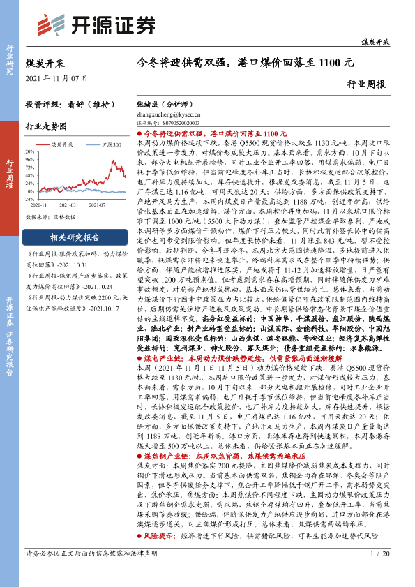 【开源证券】【20211107】今冬将迎供需双强,港口煤价回落至1100元-20页