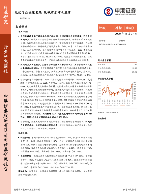 【申港证券】【20211107】20211107-申港证券-石油石化行业研究周报:光伏行业快速发展 纯碱需求增长显著-20页