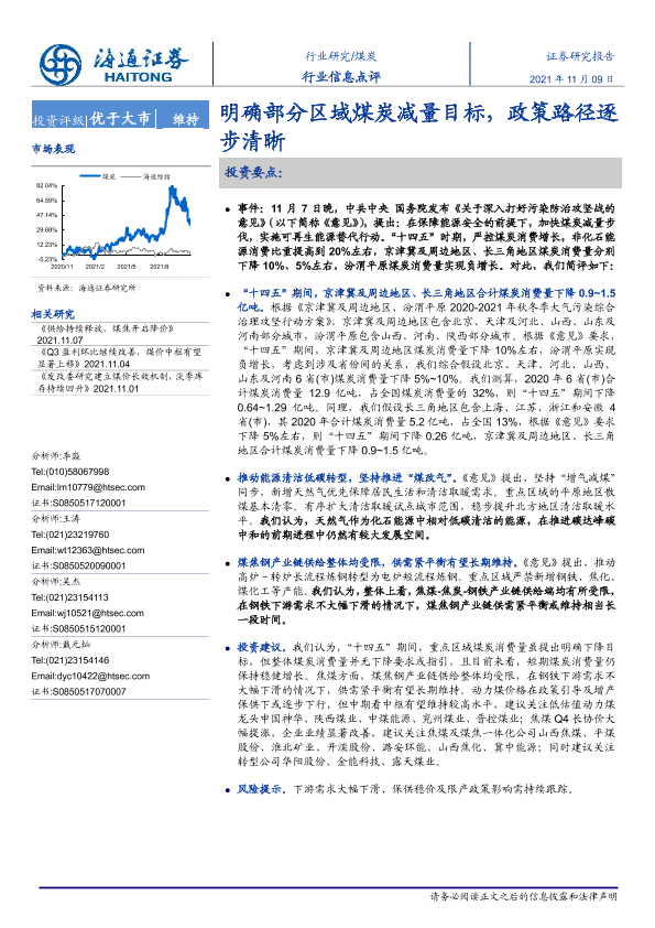 【海通证券】【20211109】煤炭:明确部分区域煤炭减量目标,政策路径逐步清晰-2页