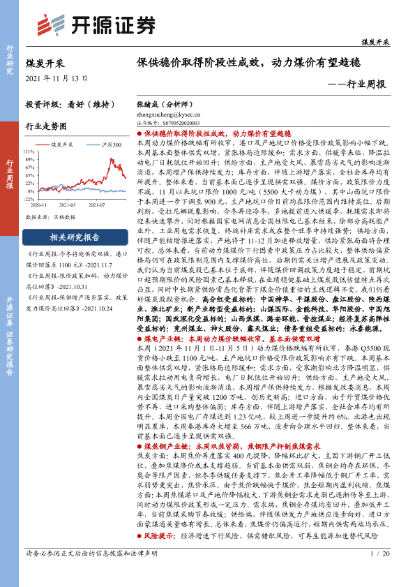 【开源证券】【20211113】20211113-开源证券-煤炭开采行业周报:保供稳价取得阶段性成效,动力煤价有望趋稳-20页