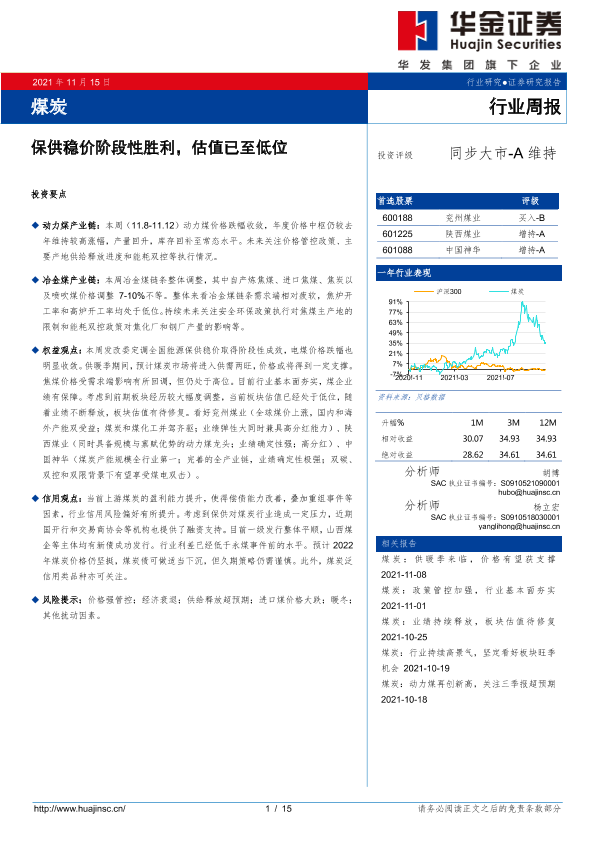 【华金证券】【20211115】煤炭:保供稳价阶段性胜利,估值已至低位-15页
