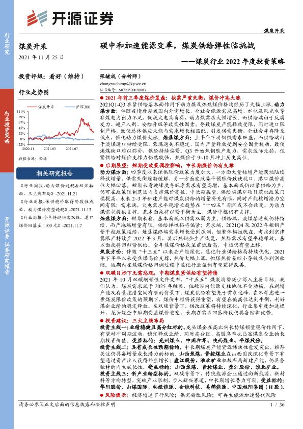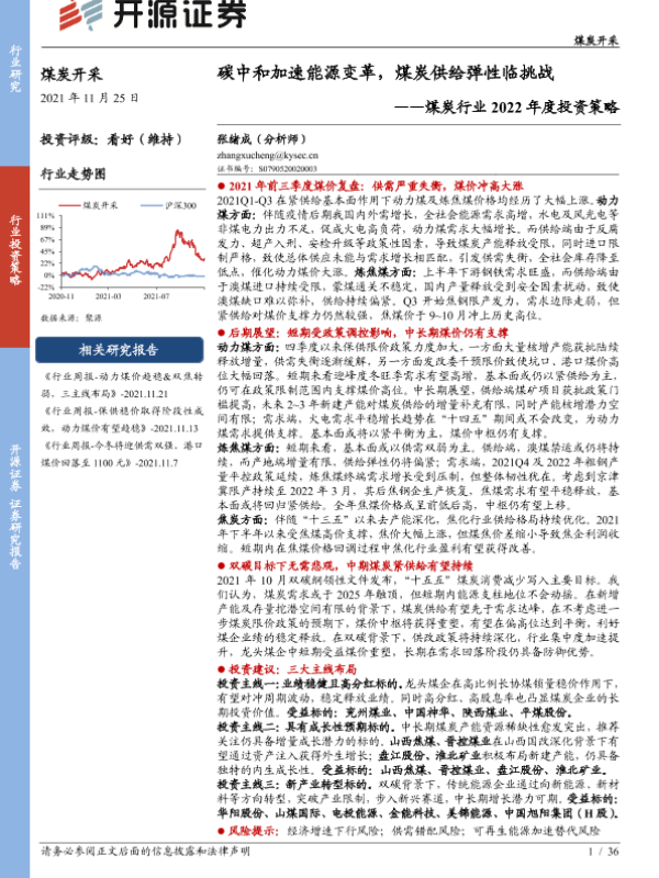 【开源证券】【20211125】煤炭行业2022年度投资策略:碳中和加速能源变革,煤炭供给弹性临挑战-36页