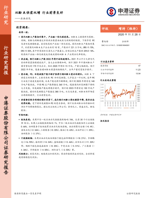 【申港证券】【20211128】20211128-申港证券-石油石化行业研究周报:双酚A供需双增 行业前景良好-20页