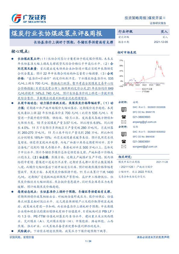 【广发证券】【20211205】20211205-广发证券-煤炭行业长协煤政策点评&周报:长协基准价上调好于预期,冬储旺季供需面有支撑-24页