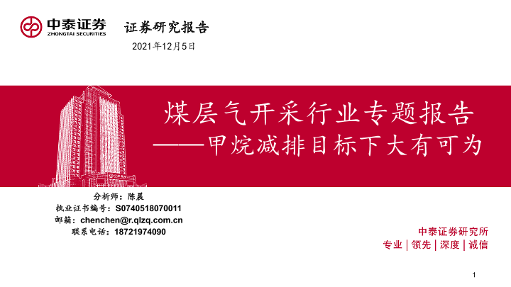 【中泰证券】【20211205】煤层气开采行业专题报告:甲烷减排目标下大有可为-23页