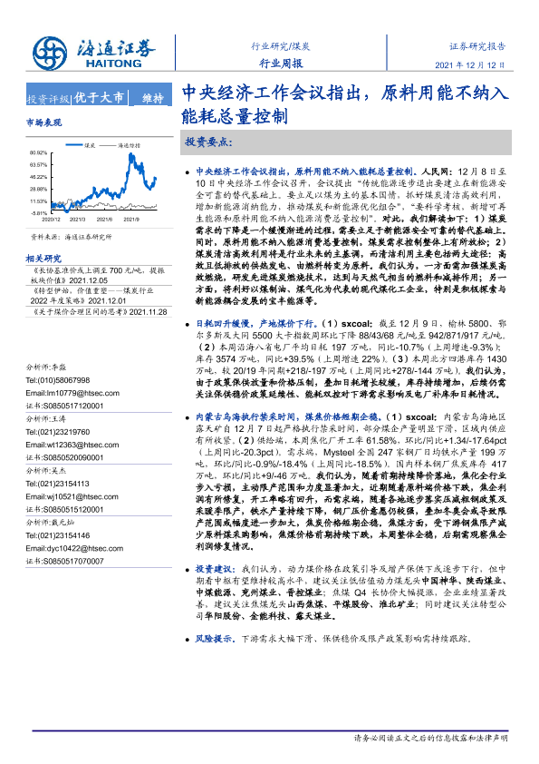 【海通证券】【20211212】20211212-海通证券-煤炭行业周报:中央经济工作会议指出,原料用能不纳入能耗总量控制-2页