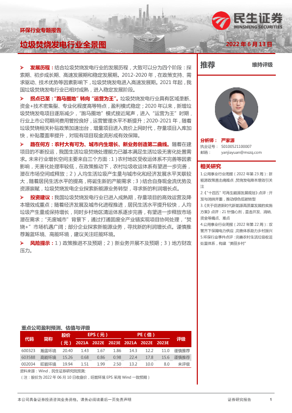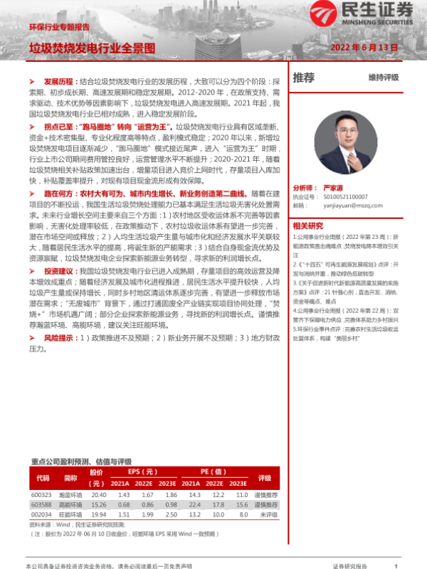 【民生证券】【20220613】环保行业专题报告:垃圾焚烧发电行业全景图-31页
