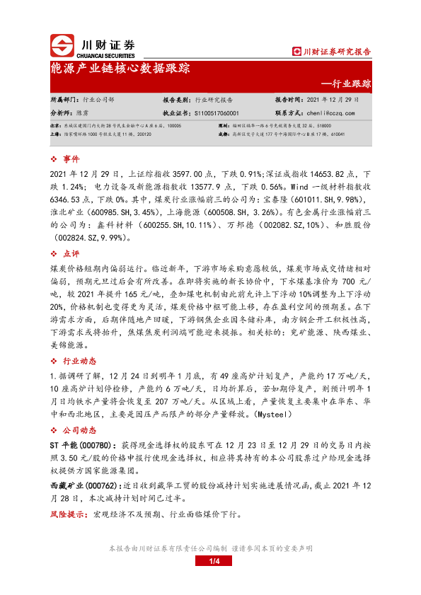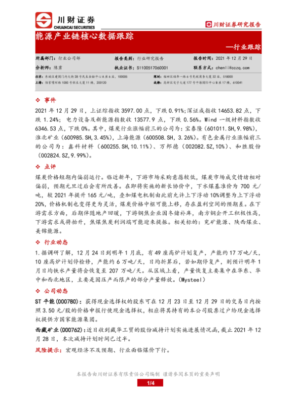 【川财证券】【20211229】能源产业链核心数据跟踪-4页