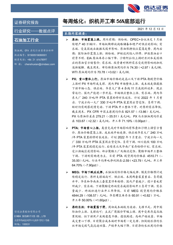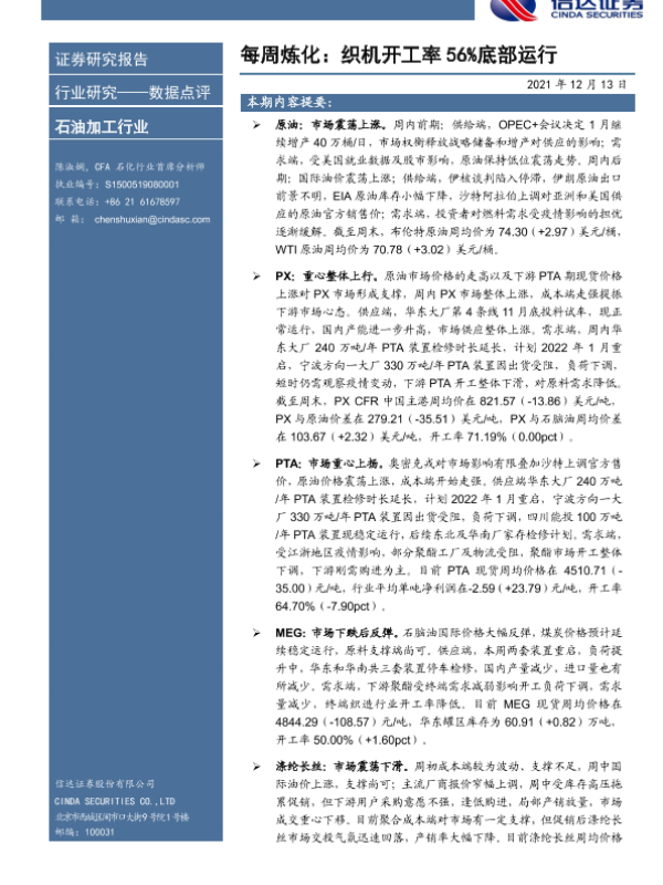【信达证券】【20211213】每周炼化:织机开工率56%底部运行-9页