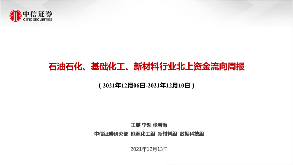 【中信证券】【20211213】石油石化、基础化工、新材料行业北上资金流向周报-31页