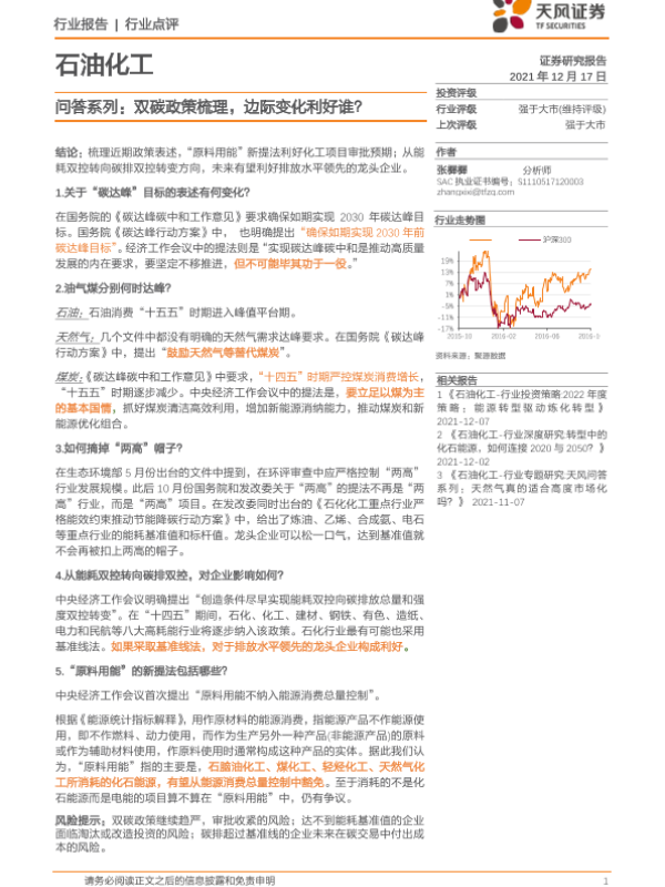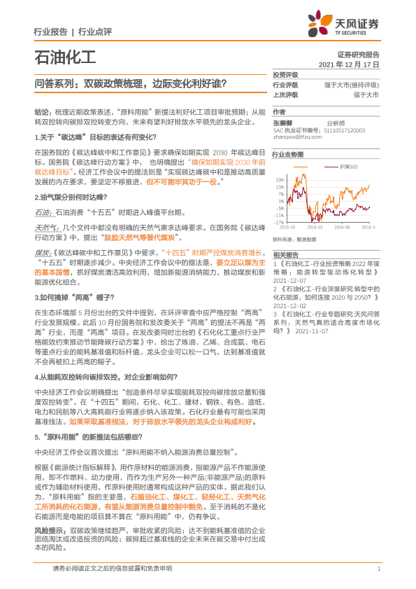 【天风证券】【20211217】石油化工:问答系列:双碳政策梳理,边际变化利好谁?-3页
