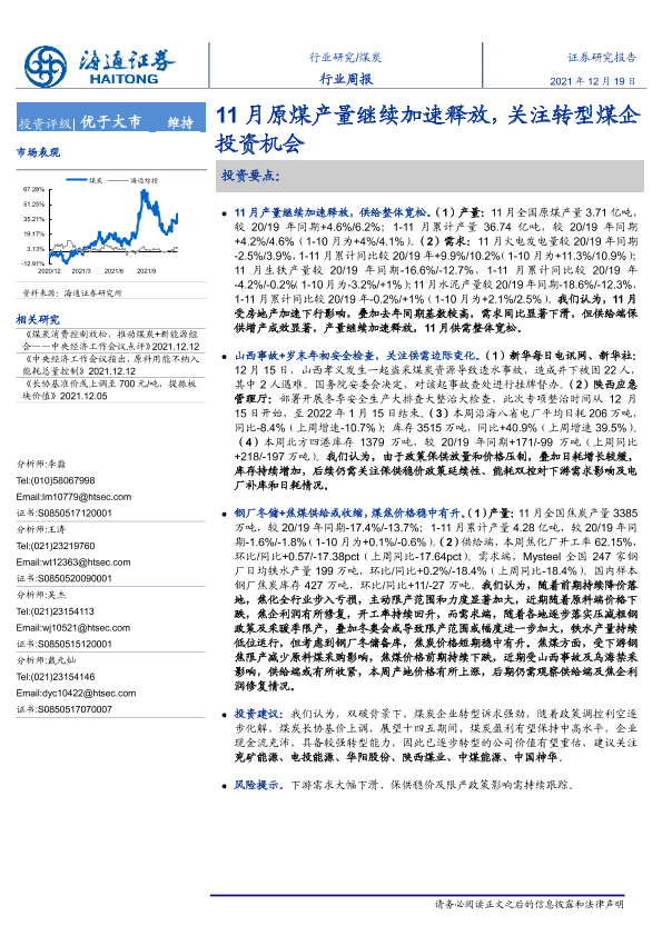 【海通证券】【20211219】20211219-海通证券-煤炭行业周报:11月原煤产量继续加速释放,关注转型煤企投资机会-2页