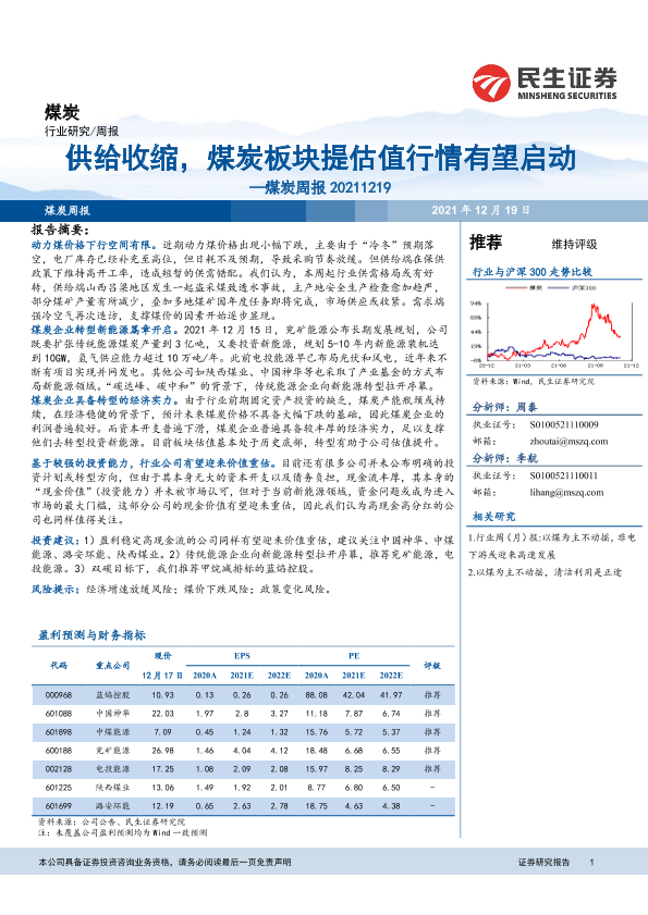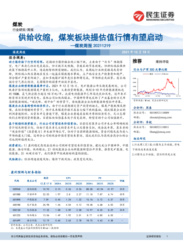 【民生证券】【20211219】20211219-民生证券-煤炭周报:供给收缩,煤炭板块提估值行情有望启动-23页