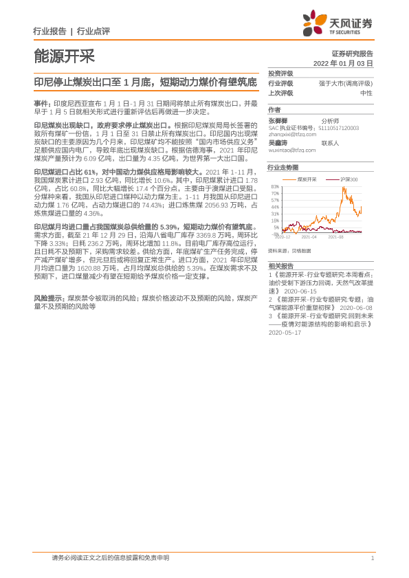 【天风证券】【20220103】能源开采行业点评:印尼停止煤炭出口至1月底,短期动力煤价有望筑底-2页