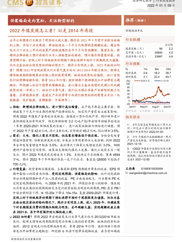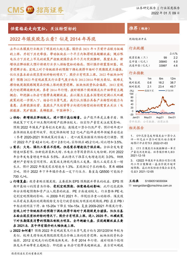 【海通证券】【20220109】2022年煤炭股怎么看?似是2014年再现-供需格局走向宽松,关注转型标的-34页