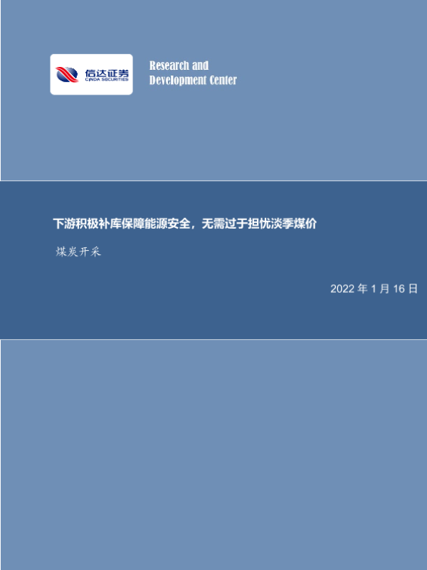 【信达证券】【20220116】20220116-信达证券-煤炭开采行业周报:下游积极补库保障能源安全,无需过于担忧淡季煤价-24页