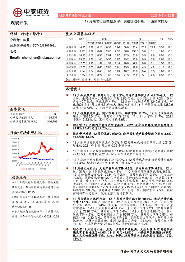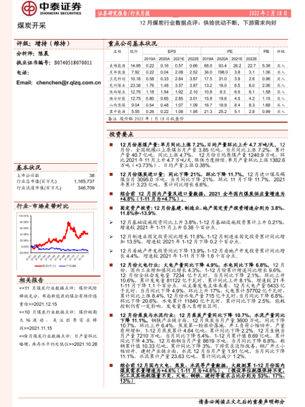 【中泰证券】【20220118】12月煤炭行业数据点评:供给扰动不断,下游需求向好-7页