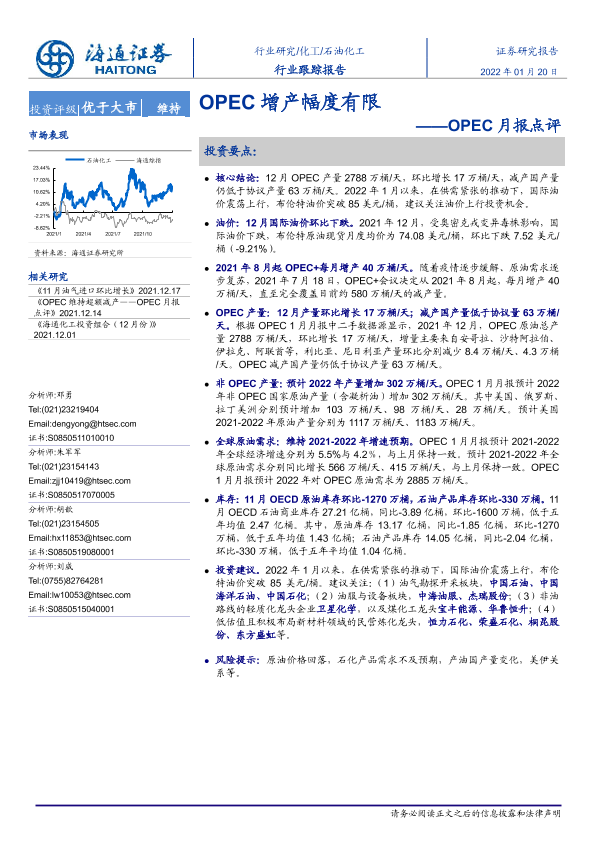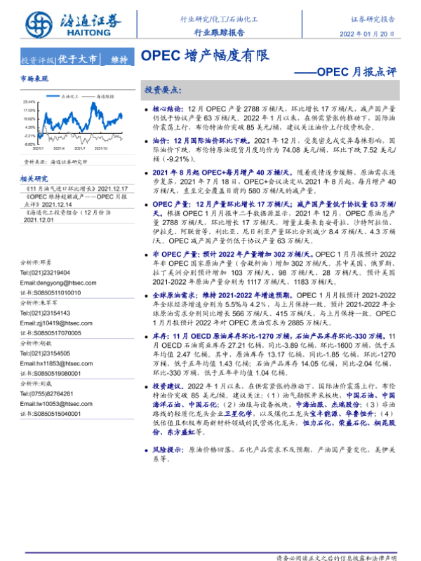 【海通证券】【20220120】20220120-海通证券-石油化工行业跟踪报告:OPEC月报点评-OPEC增产幅度有限-5页