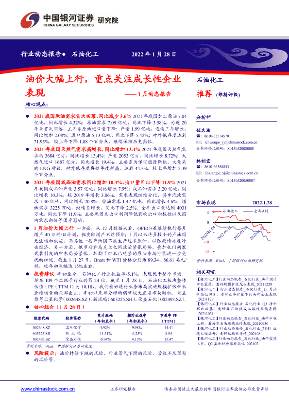 【银河证券】【20220128】石油化工1月动态报告:油价大幅上行,重点关注成长性企业表现-22页