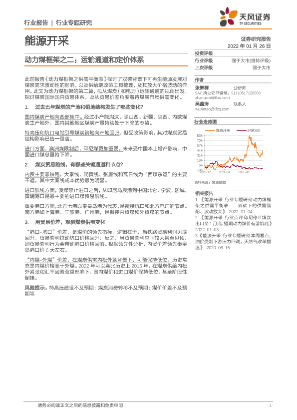 【天风证券】【20220126】能源开采行业专题研究:动力煤框架之二:运输通道和定价体系-14页