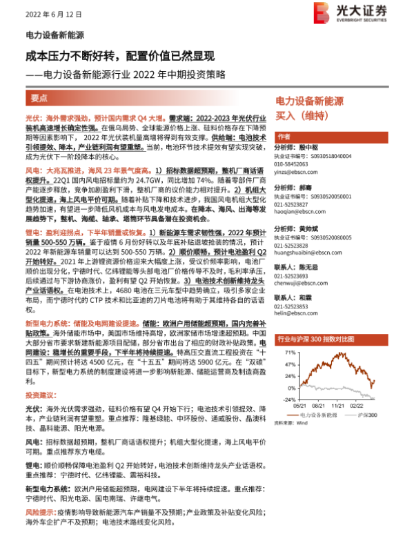 【光大证券】【20220612】电力设备新能源行业2022年中期投资策略:成本压力不断好转,配置价值已然显现-49页