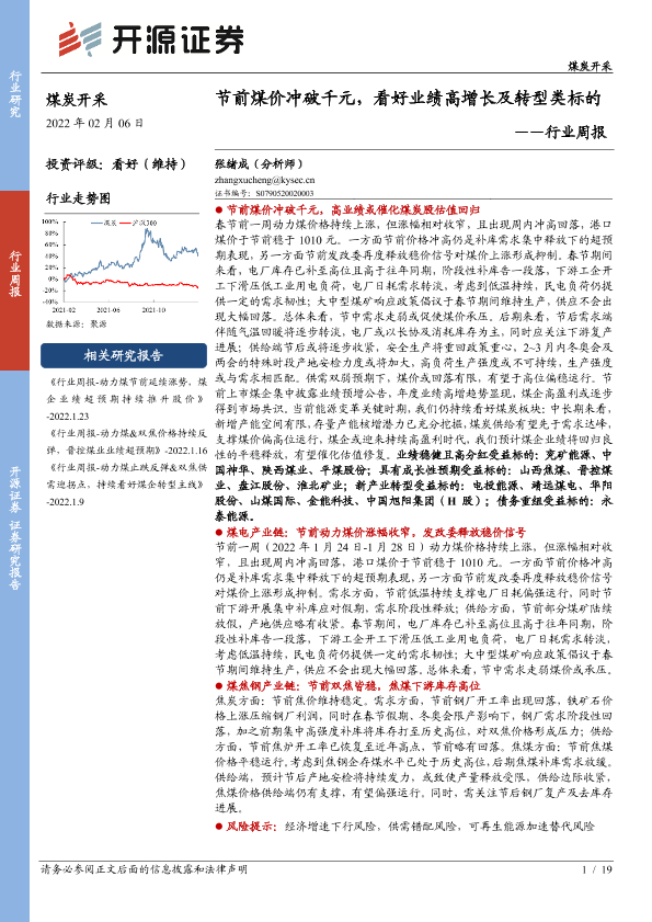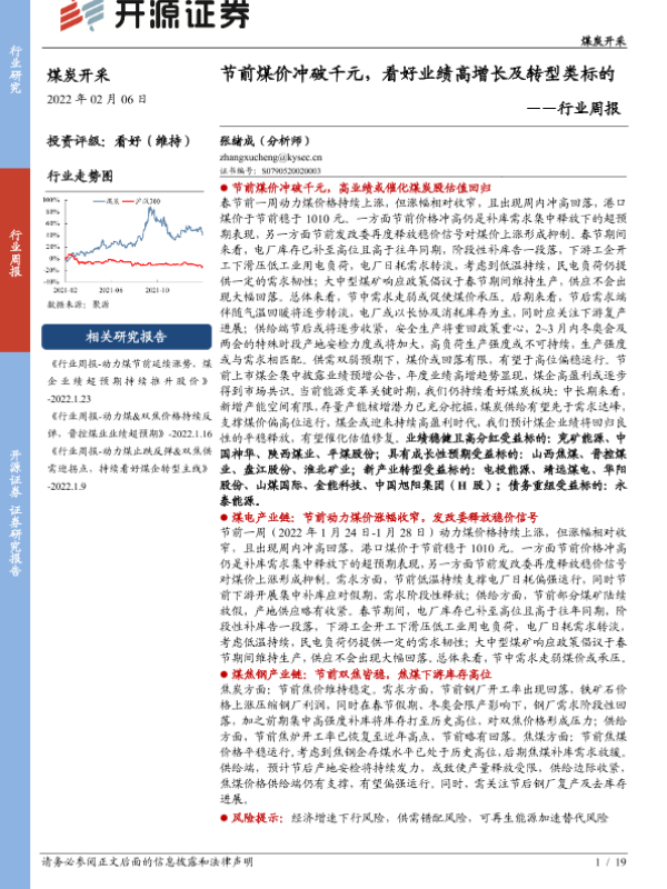 【开源证券】【20220206】煤炭开采行业周报:节前煤价冲破千元,看好业绩高增长及转型类标的-19页