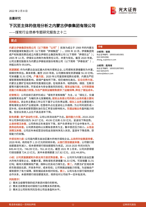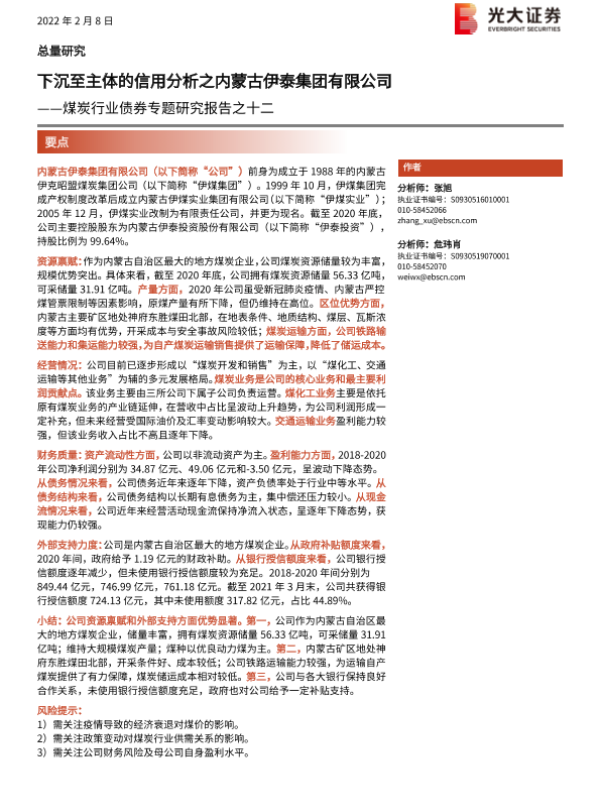 【光大证券】【20220208】下沉至主体的信用分析之内蒙古伊泰集团有限公司-15页
