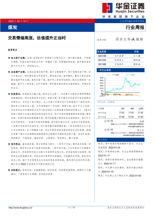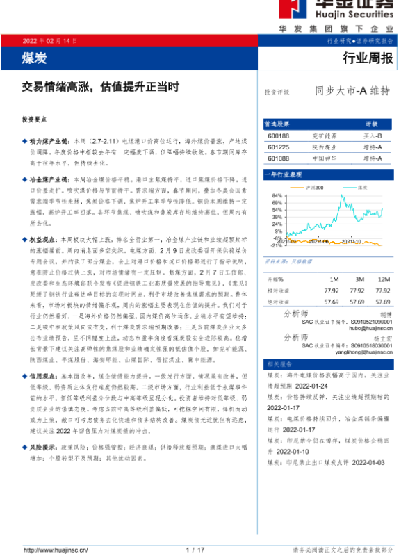 【华金证券】【20220214】20220214-华金证券-煤炭行业周报:交易情绪高涨,估值提升正当时-17页
