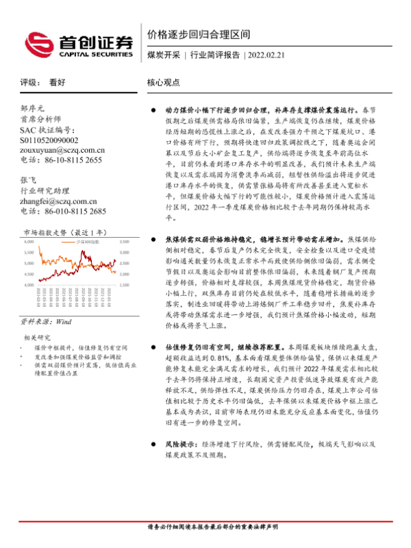 【首创证券】【20220221】20220221-首创证券-煤炭开采行业简评报告:价格逐步回归合理区间-12页