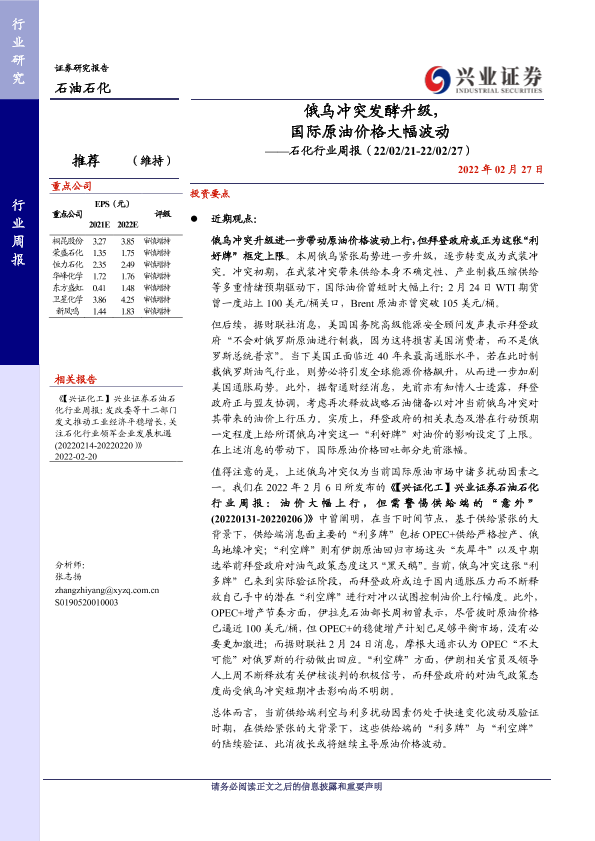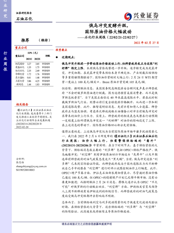 【兴业证券】【20220227】20220227-兴业证券-石化行业周报:俄乌冲突发酵升级,国际原油价格大幅波动-16页