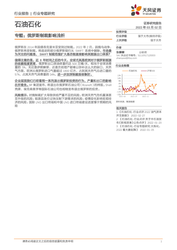 【天风证券】【20220302】石油石化专题:俄罗斯制裁影响浅析-9页