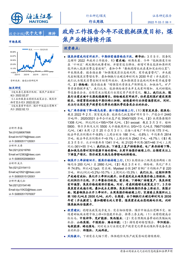 【海通证券】【20220306】政府工作报告今年不设能耗强度目标,煤焦产业链持续升温-2页