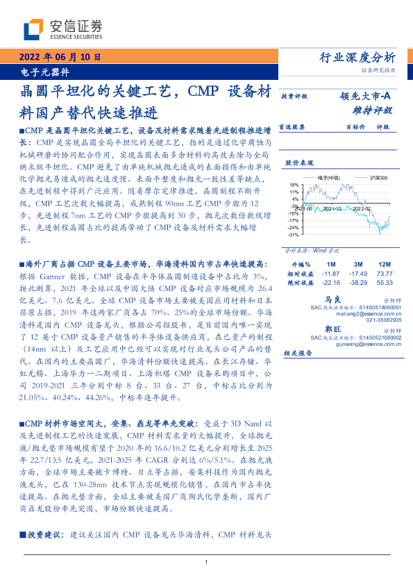 【安信证券】【20220610】电子元器件行业深度分析:晶圆平坦化的关键工艺,CMP设备材料国产替代快速推进-43页