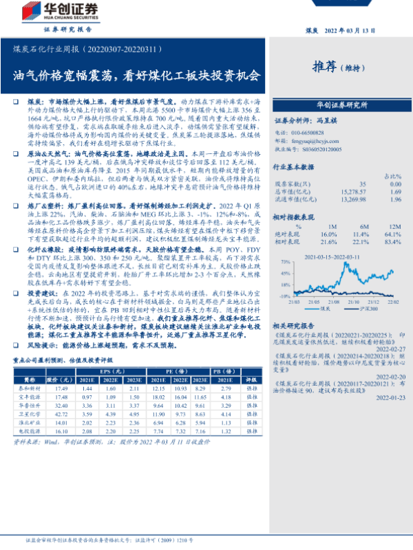 【华创证券】【20220313】20220313-华创证券-煤炭石化行业周报:油气价格宽幅震荡,看好煤化工板块投资机会-20页