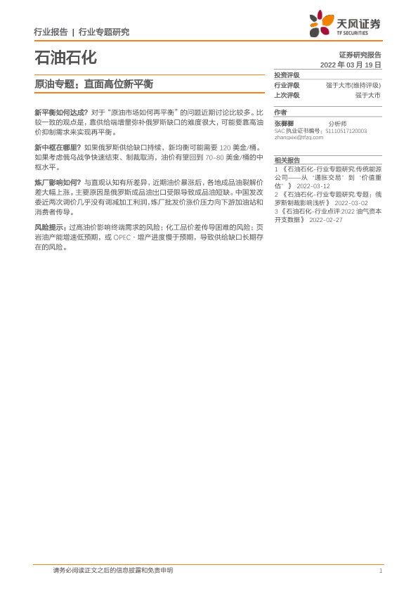 【天风证券】【20220319】原油专题:直面高位新平衡-7页