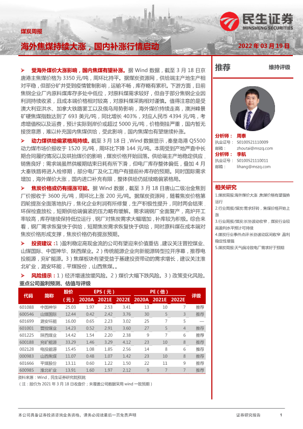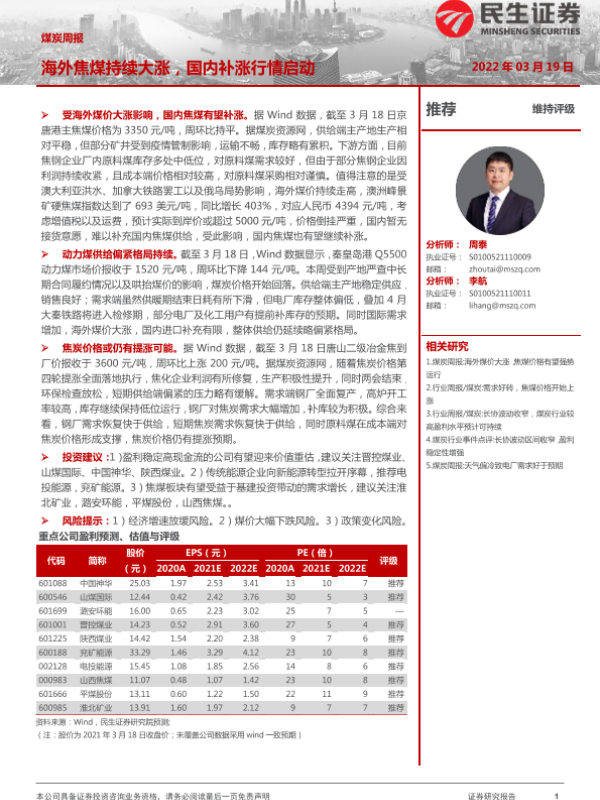 【民生证券】【20220319】20220319-民生证券-煤炭周报:海外焦煤持续大涨,国内补涨行情启动-21页