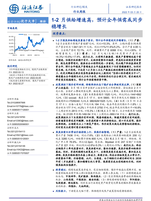 【海通证券】【20220320】20220320-海通证券-煤炭行业周报:1-2月供给增速高,预计全年供需或同步稳增长-2页