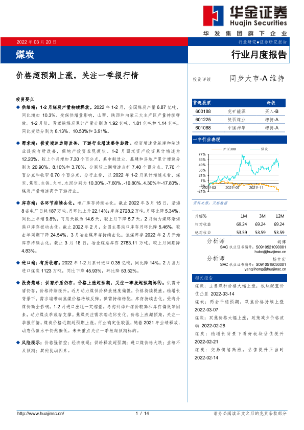 【华金证券】【20220320】20220320-华金证券-煤炭行业月度报告:价格超预期上涨,关注一季报行情-14页