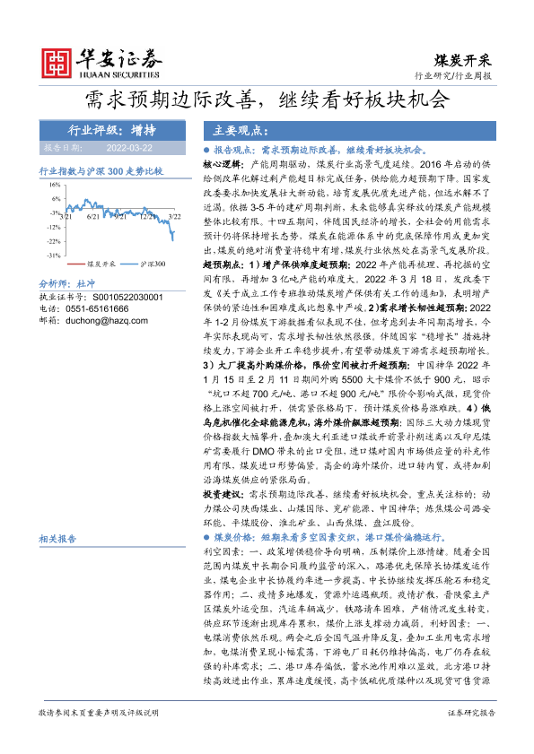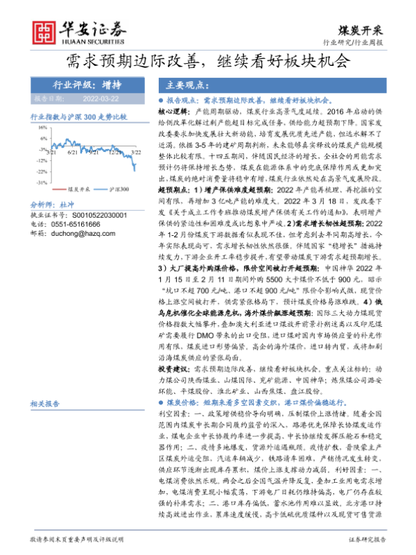 【华安证券】【20220322】20220322-华安证券-煤炭开采:需求预期边际改善,继续看好板块机会-23页