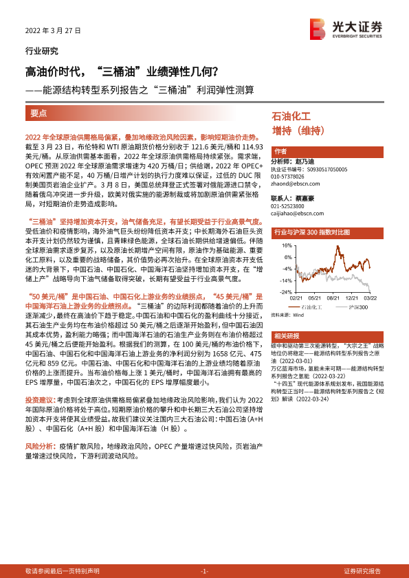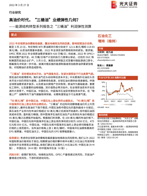 【光大证券】【20220327】高油价时代,“三桶油”业绩弹性几何?——能源结构转型系列报告之“三桶油”利润弹性测算-17页
