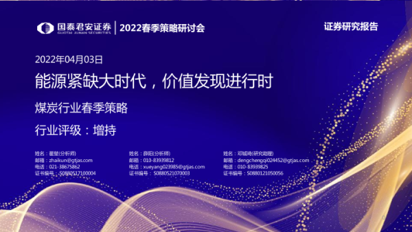 【国泰君安证券】【20220403】20220403-国泰君安-煤炭行业春季策略:能源紧缺大时代,价值发现进行时-29页