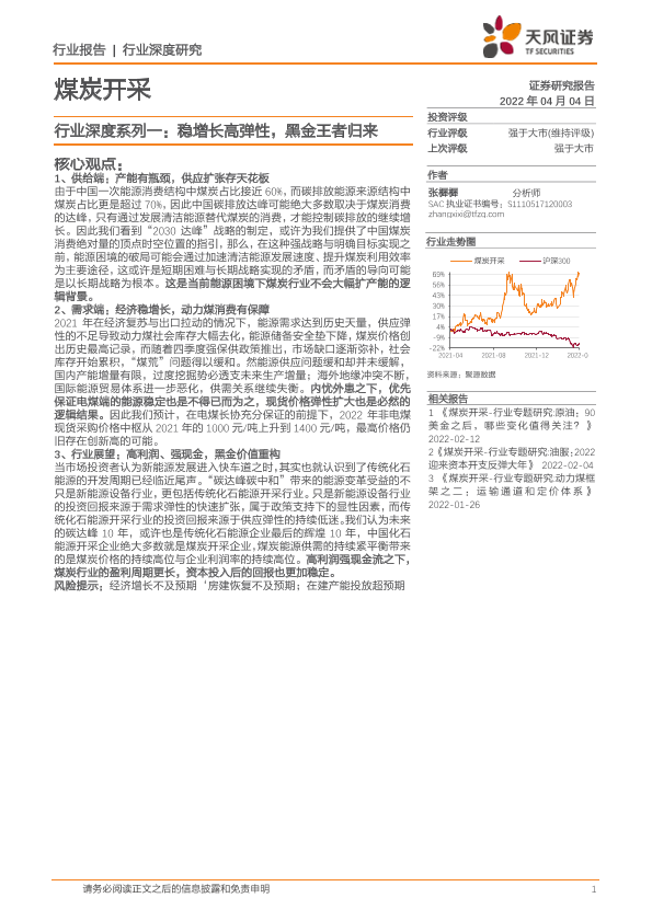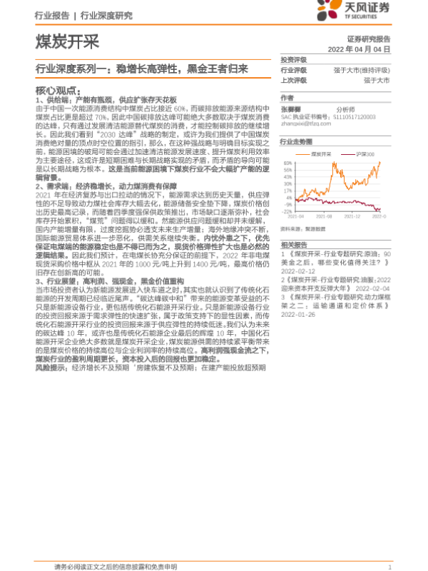 【天风证券】【20220404】煤炭开采行业深度系列一:稳增长高弹性,黑金王者归来-12页